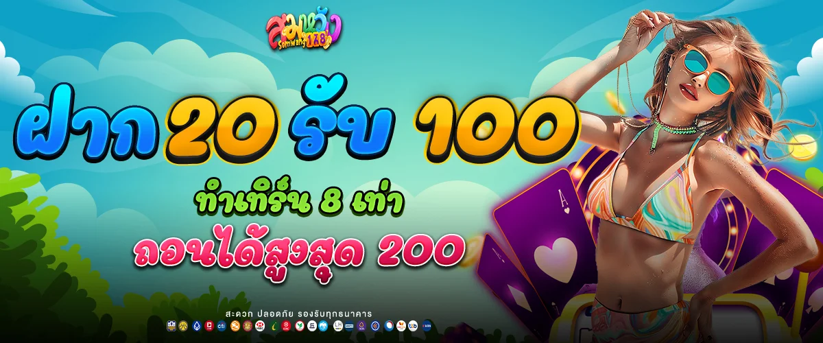 ฝาก 20 → รับเพิ่ม 80 = รวม 100 / ทำเทิร์น 8 เท่า / ถอนได้สูงสุด 200