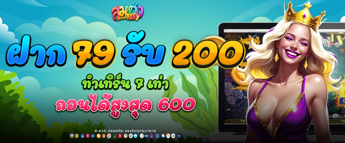 ฝาก 79 → รับเพิ่ม 121 = รวม 200 / ทำเทิร์น 7 เท่า / ถอนได้สูงสุด 600